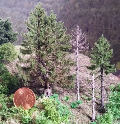 Avantgarde Modellbau Für die Maßstäbe 1:160 und 1:220 gibt es jetzt Fichten als mehrstämmigen Solitärbaum und als morsches Totholz mit abblätternder Rinde.
